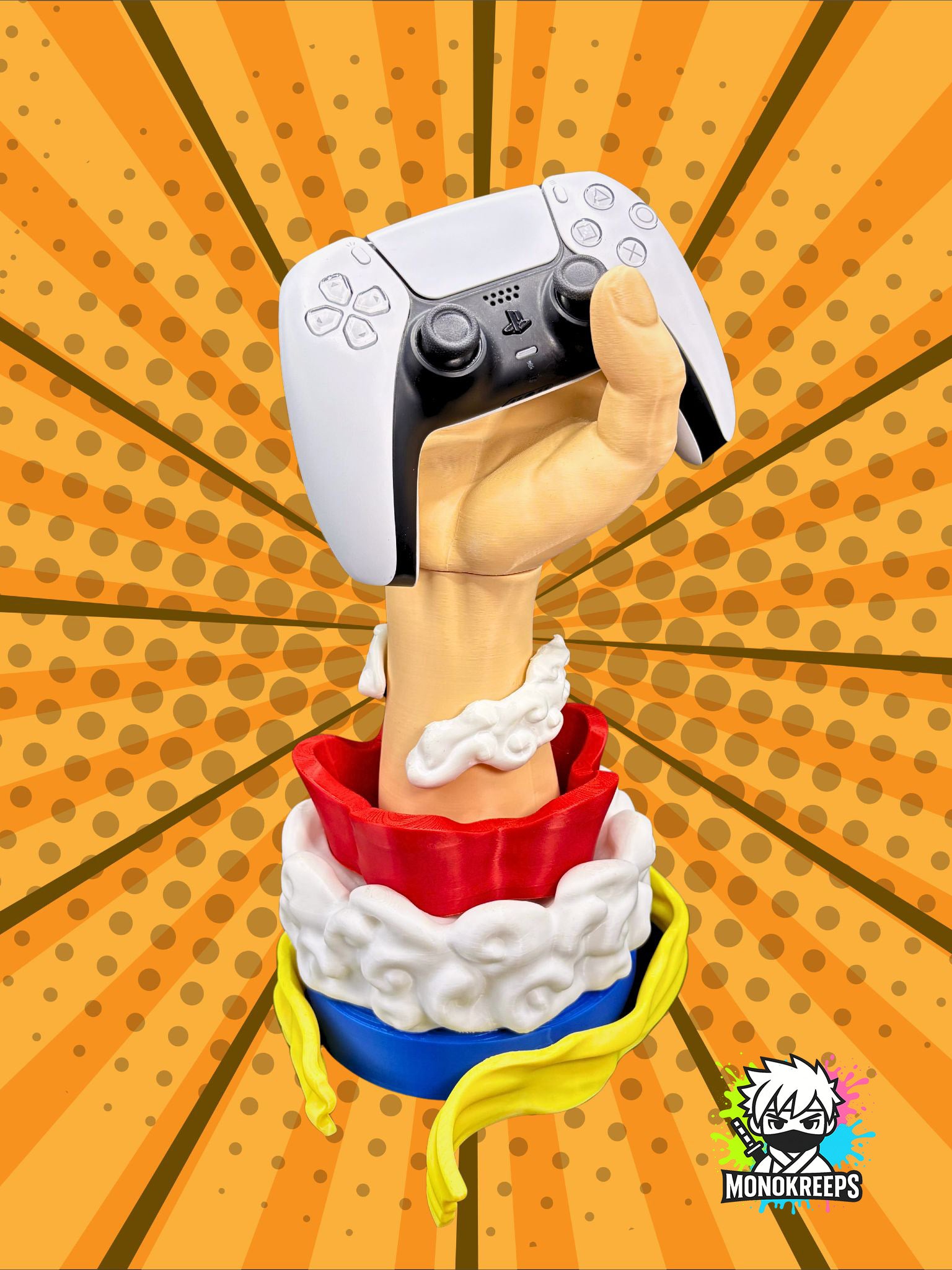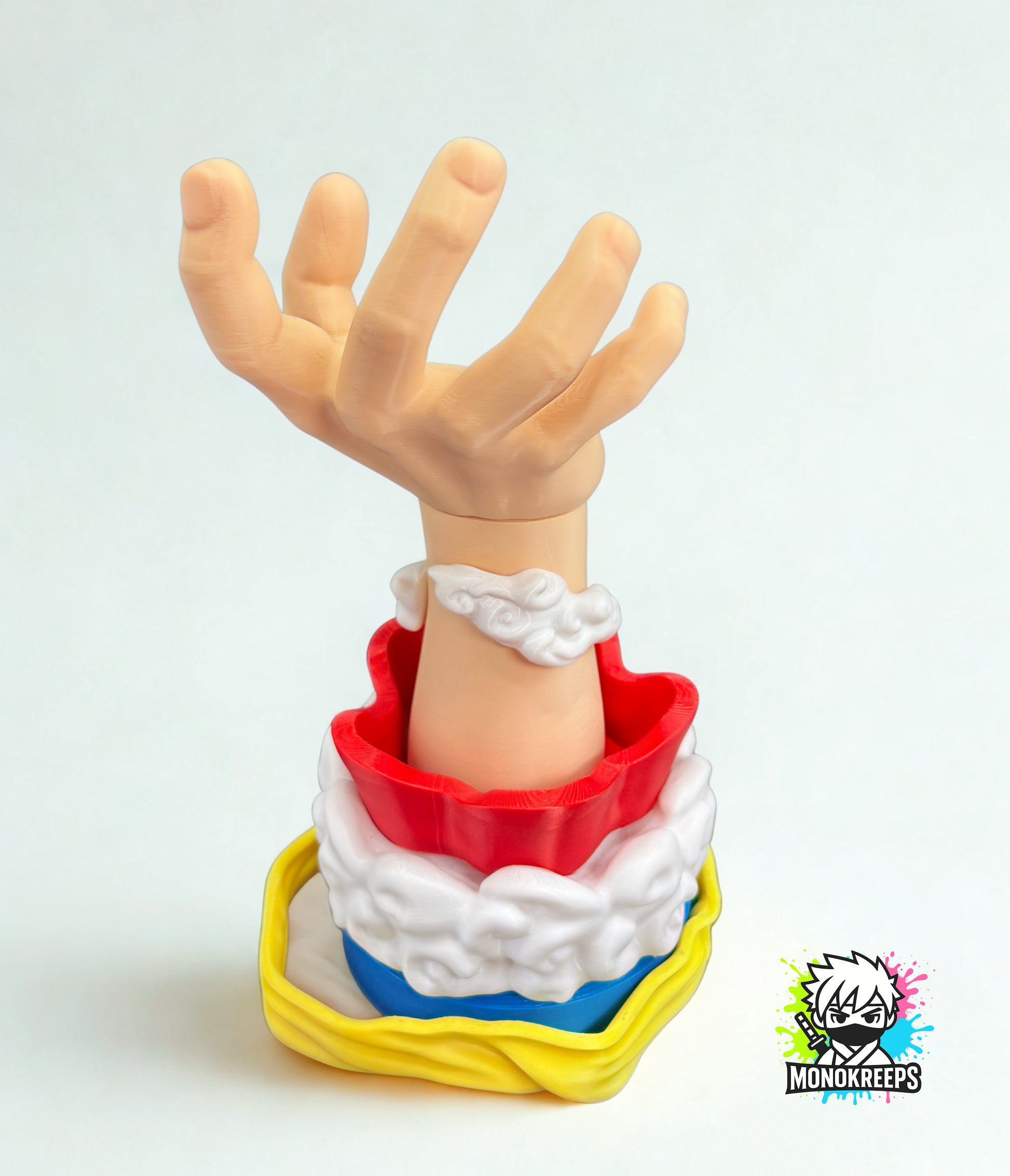 Inspired by the unstoppable spirit of a rubber-powered sea fighter, this dynamic arm design captures the heat and motion of battle. Whether holding your controller, phone, or standing proudly on display, it radiates energy and courage.